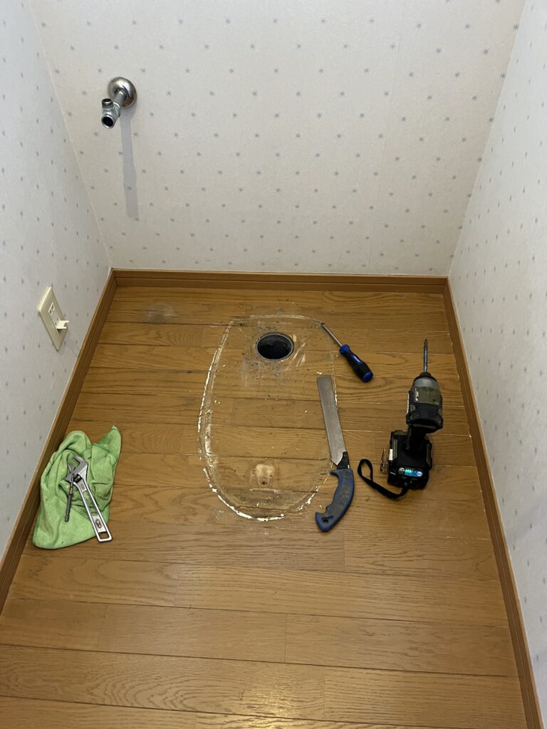 ③便器を外すとこうなってるんですね…これも外しちゃいましょう!