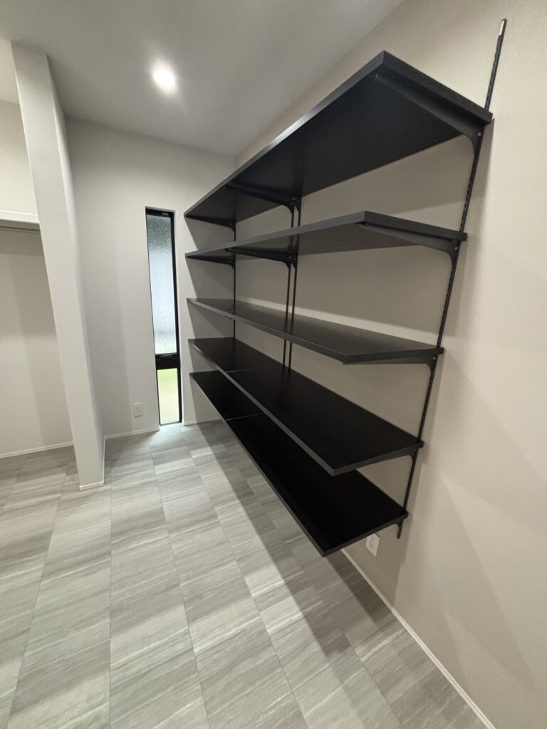 こちらのパントリーには、可動棚を設置しております。