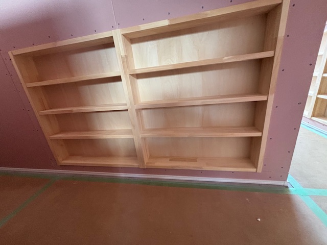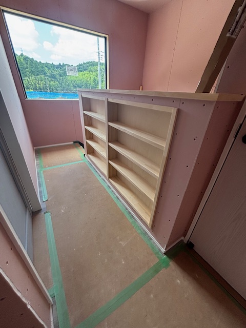現在、建築中のお家にて大工さんに本棚を創って頂きました!