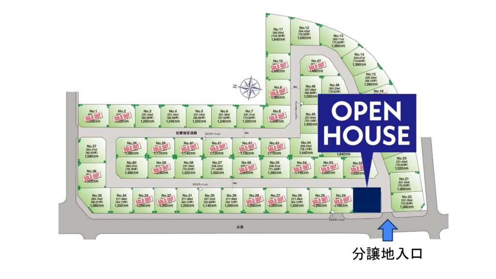 とても広い分譲地ですが、分譲地入口に位置する区画が今回の開催場所なのでとても分かりやすいです(*^^*)