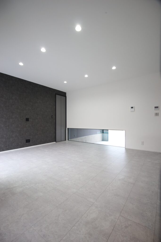 1階の床を高くしてガレージと高低差をつけることで、リビングからガレージを眺められるように設計しています(‘ω’)ノ