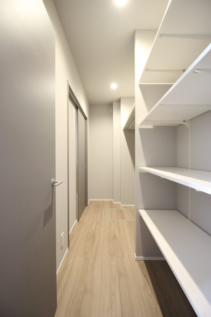 室内には、今設計するオーナー様が多い「1階ファミリークローゼット」を広く作りました!