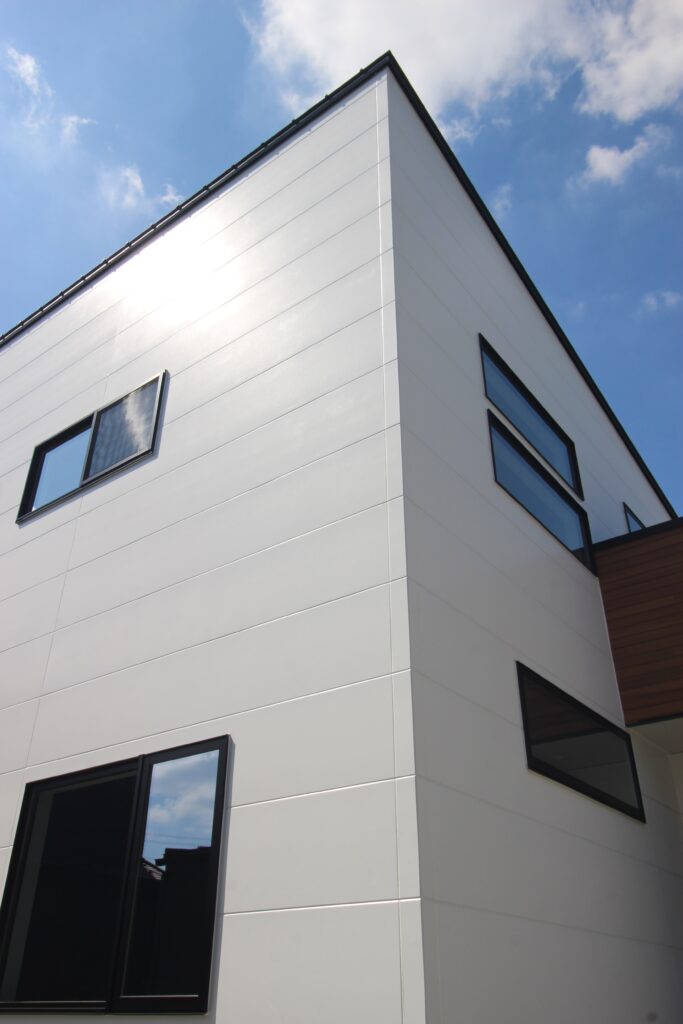 陽射しに映えるホワイトのフラットサイディング、良いです!!!