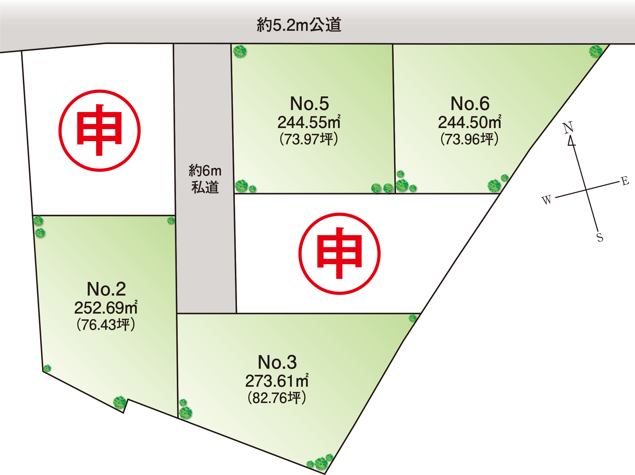 総区画数 6区画 接道 北東側約5.2m公道、約6m私道にそれぞれ接道