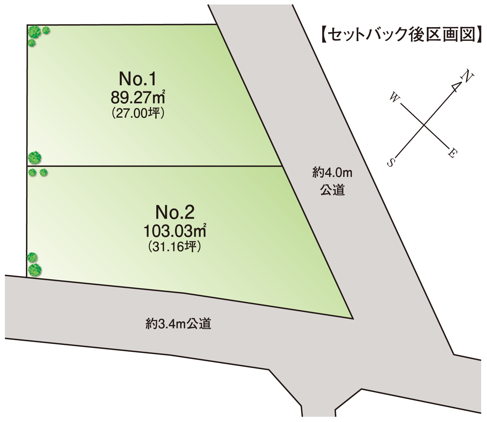 | 備考 | No.1、No.2ともそれぞれセットバックあり ※掲載区画図はセットバック後 |