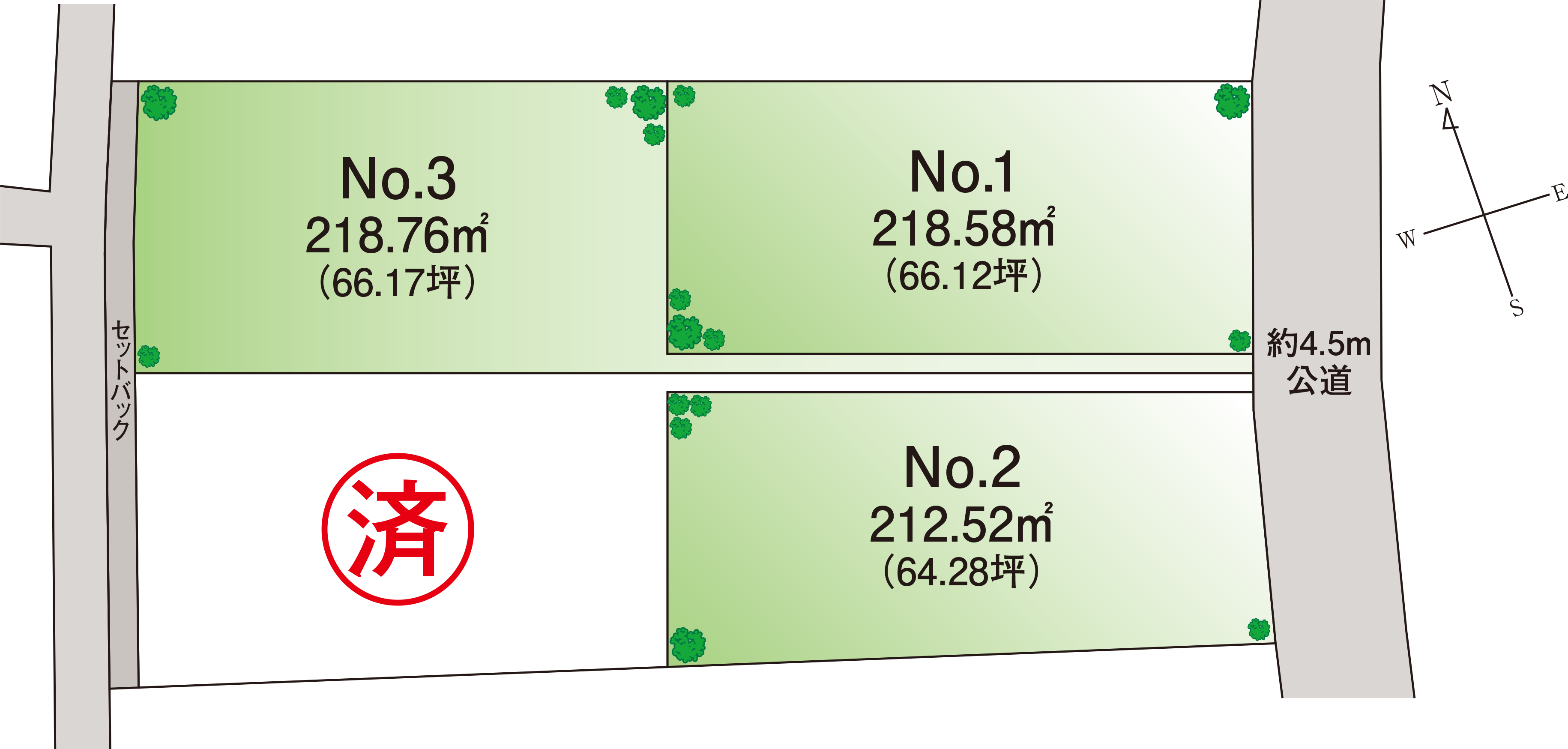 | 備考 | No.3:建築条件なし(セットバック10.62㎡【3.21坪】あり) |