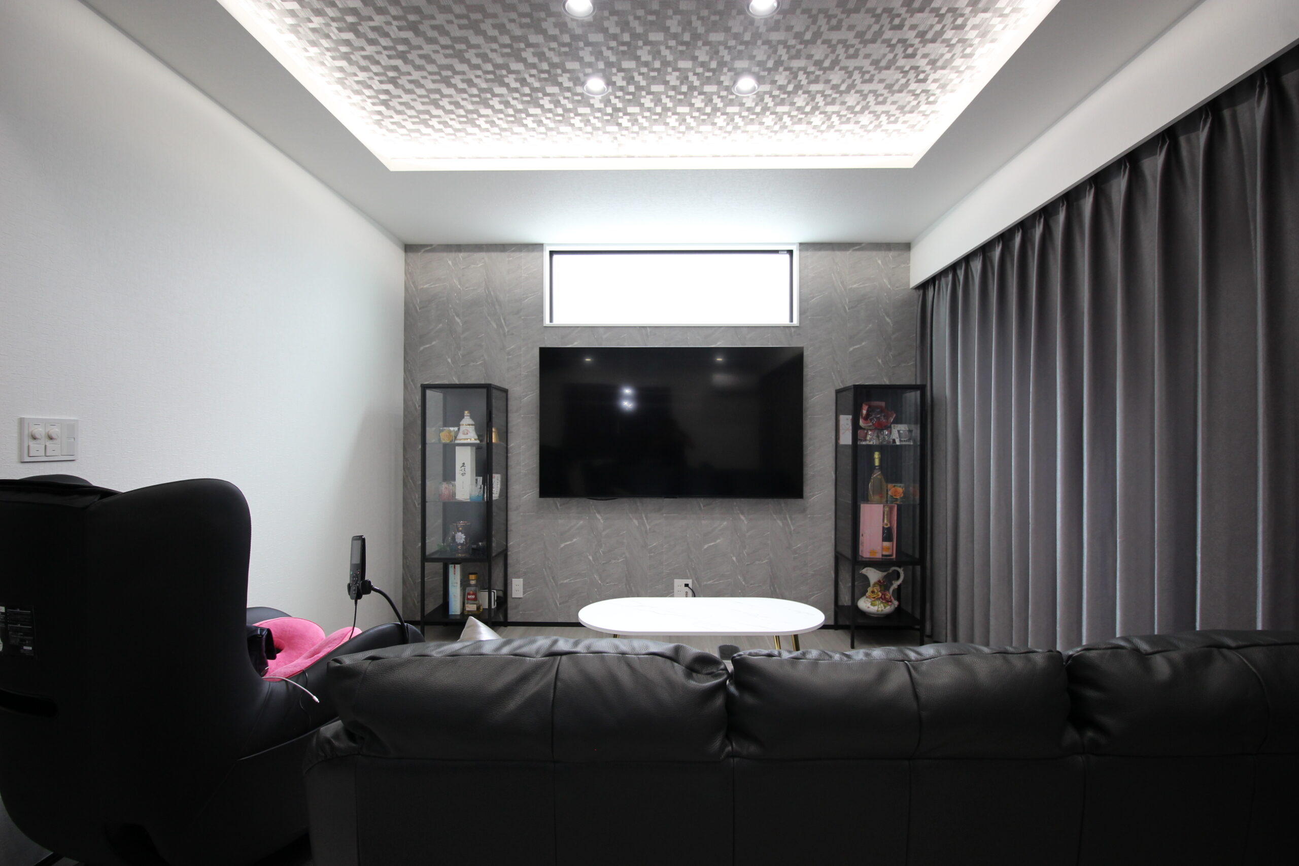 とにかく、家で寛ぐ時間がとても増えましたね。家に居る時間の9.5割はリビングのソファに座ってます(笑)。リビング周りだけ、意図的に3面が壁になる設計にしたんですよ。あえて壁で囲うことで、間接照明を付けるとシアター空間の感覚ですごく居心地が良くなり、テレビで映画を観始めたらもう動けないですね(笑)。