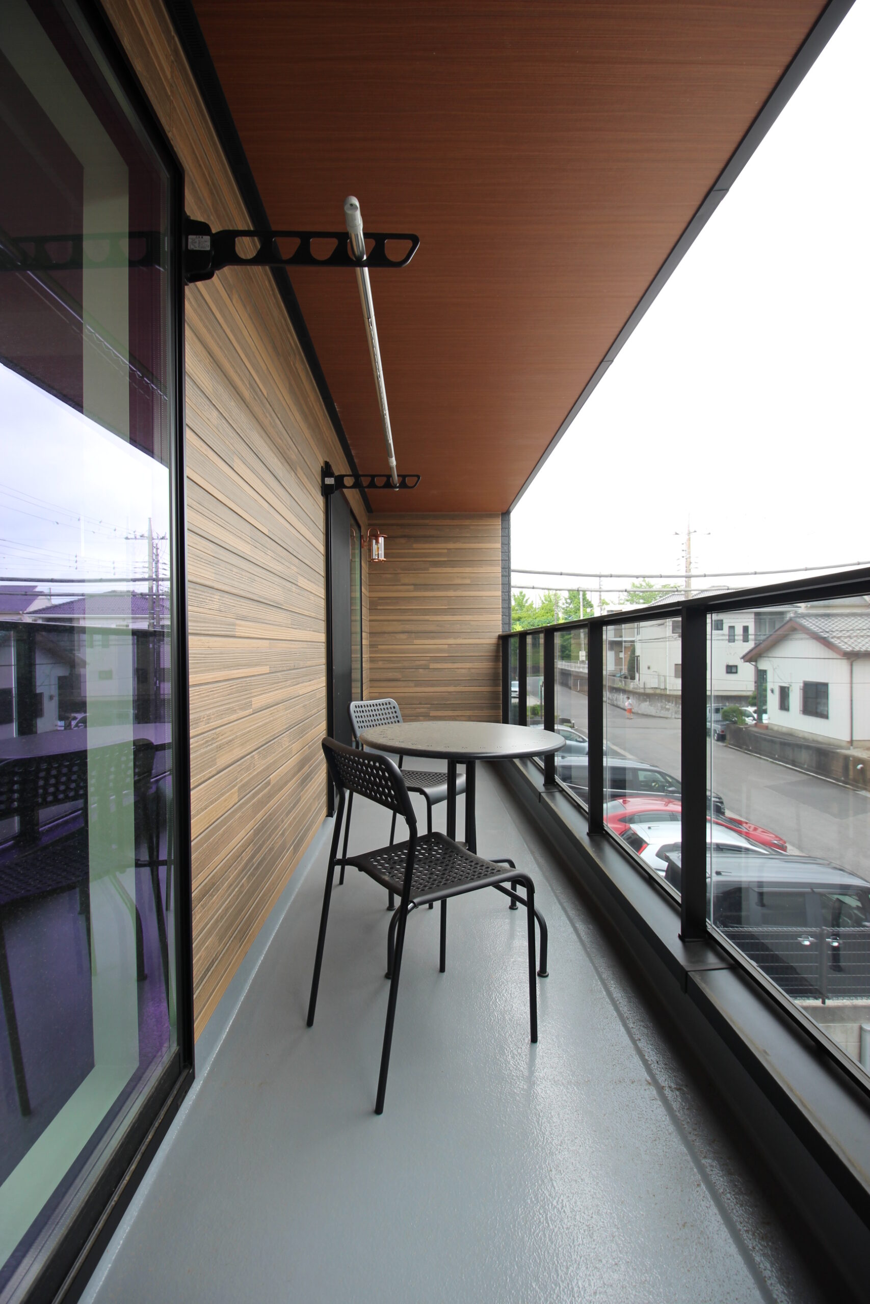 リビングダイニングからすぐ出入りできる場所には、天気の良い日に寛ぎ、洗濯物も干せる超ワイドなビルトインバルコニーをつくりました。