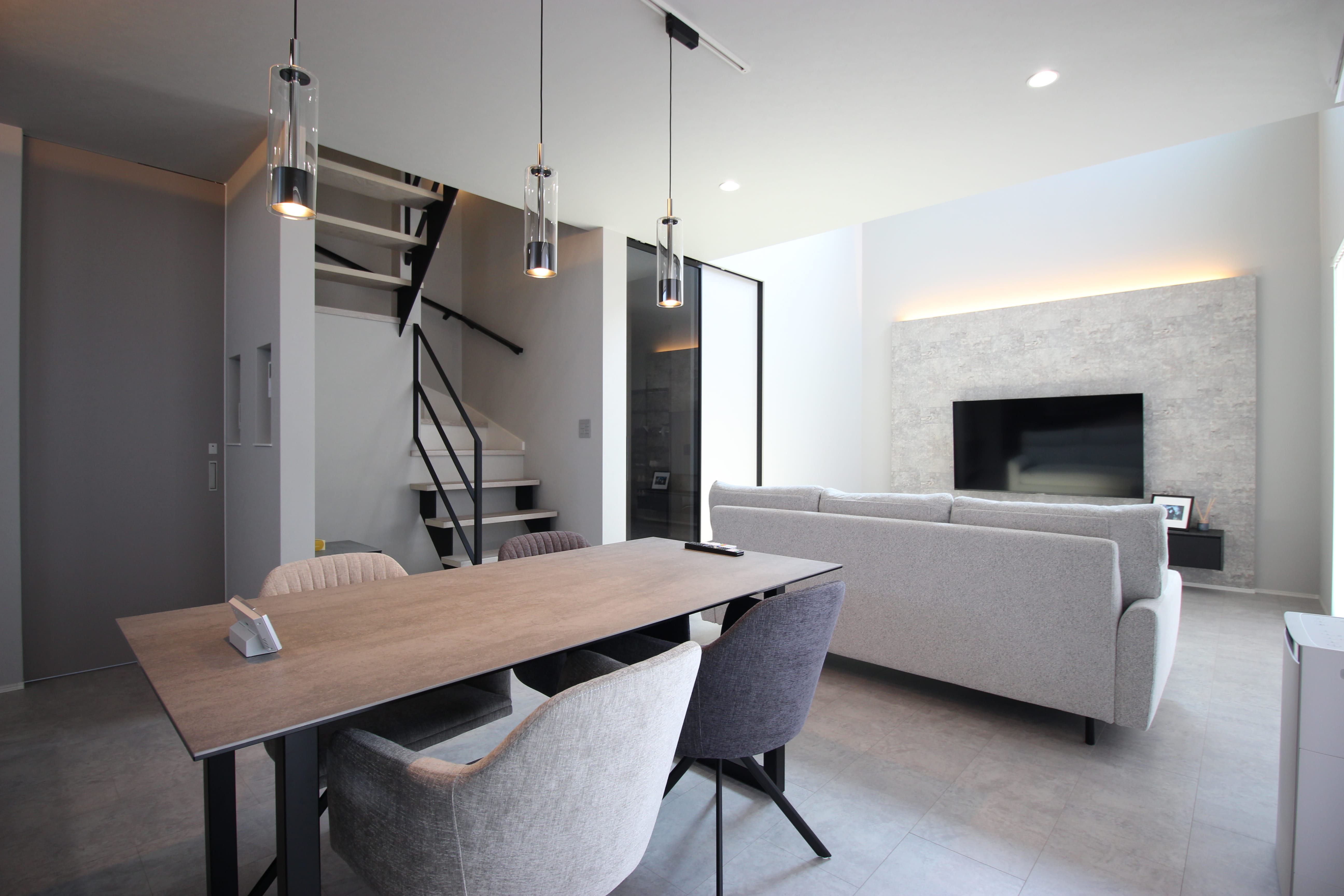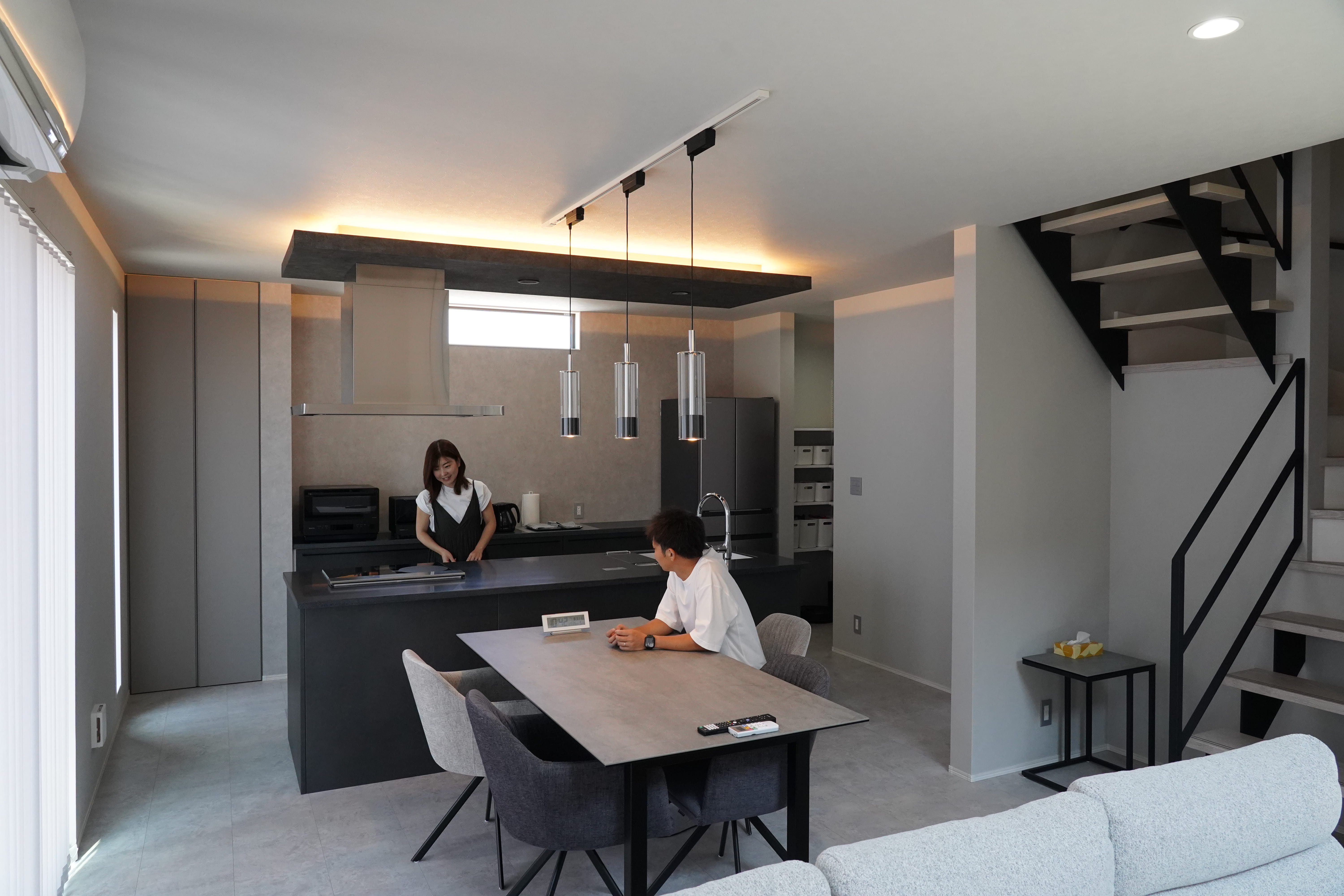 グレーをベースにマットなブラックも取り入れて、ご主人のイメージドンピシャの室内になりました。
