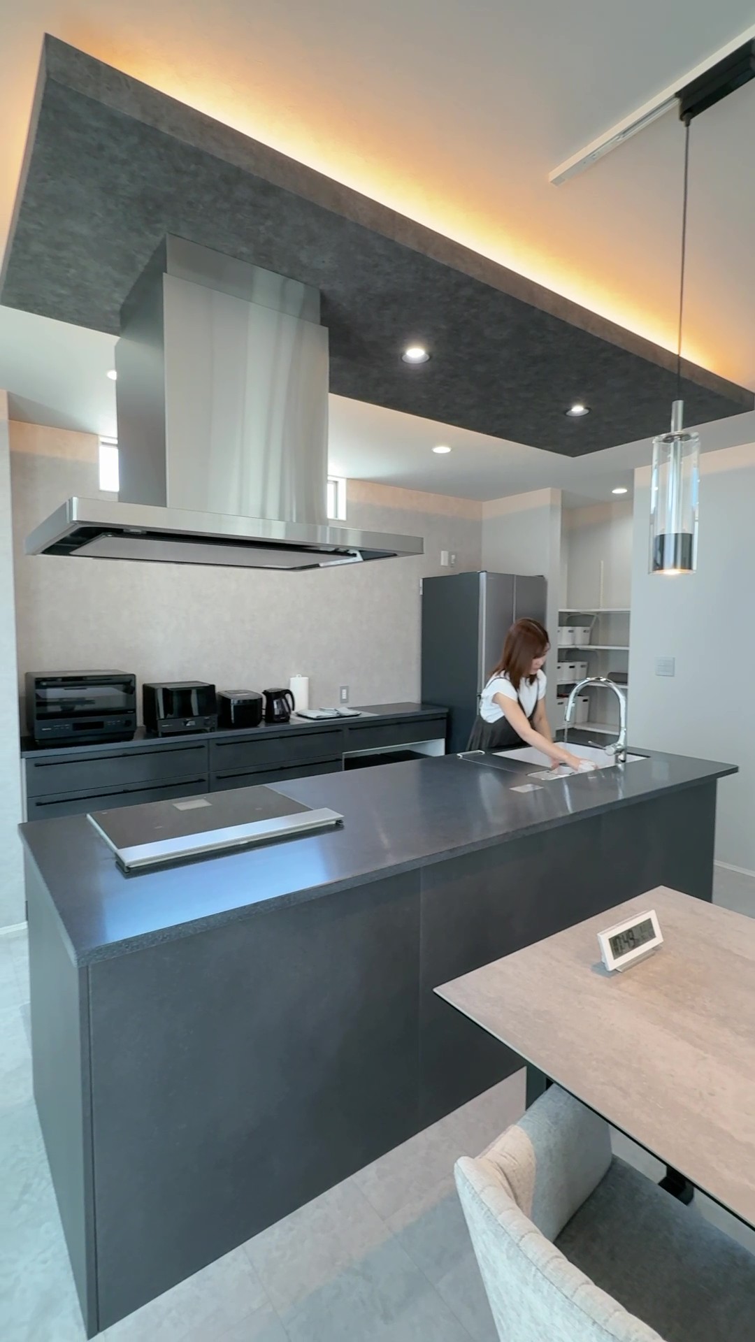 奥様がどうしてもほしかった、ワイドフラットでスタイリッシュなアイランドキッチン。